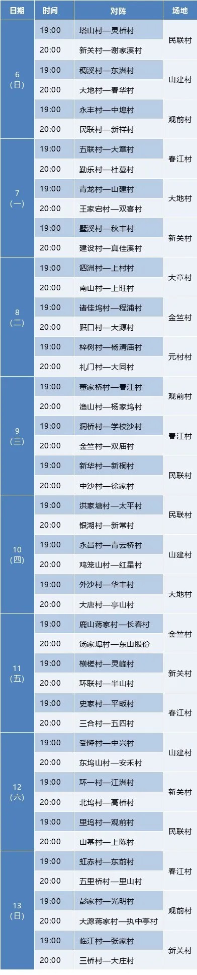競争は9つの競技ゾーンで開催されました: ドンツー地区のミンリアン村。 Yinhu地区のDadi Village、Jinzhu Village、およびGuanqian Village(Zhougongwu)。チュンジャン村とシャンジアン村佐野省の村。 Xindeng Townの元村。チャンルフタウンバスケットボールホール。デイアンの町のXinguan村 。今年、さらに多くの人々が玄関口でエキサイティングなゲームを見ることができます。